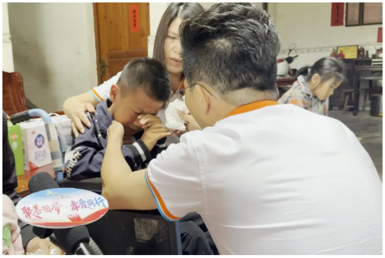 “谢谢叔叔阿姨的帮助,我一定会更努力学习,将来回报社会。”一位失去父亲、与年迈爷爷相依为命的男孩,接过物资时哽咽却坚定地承诺。